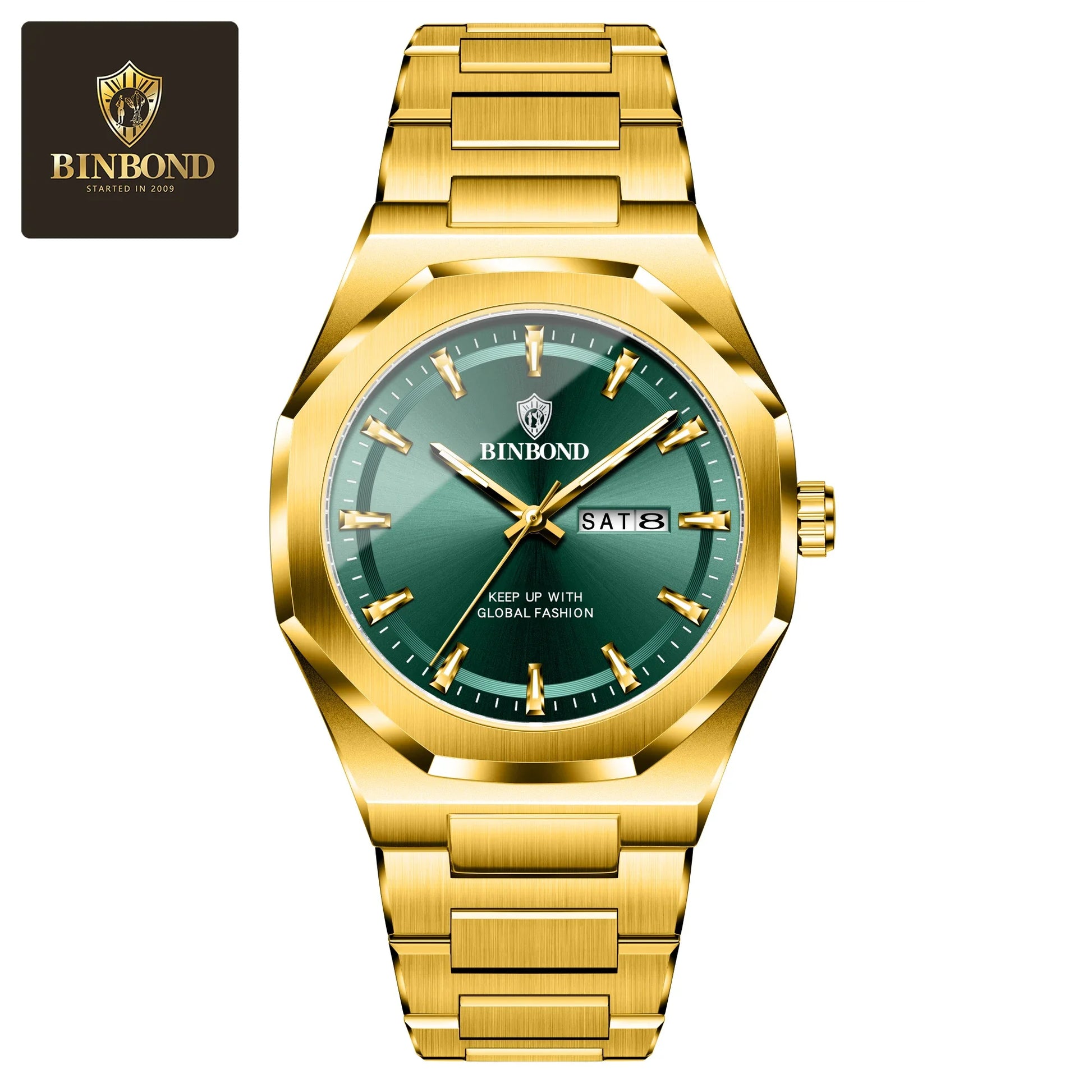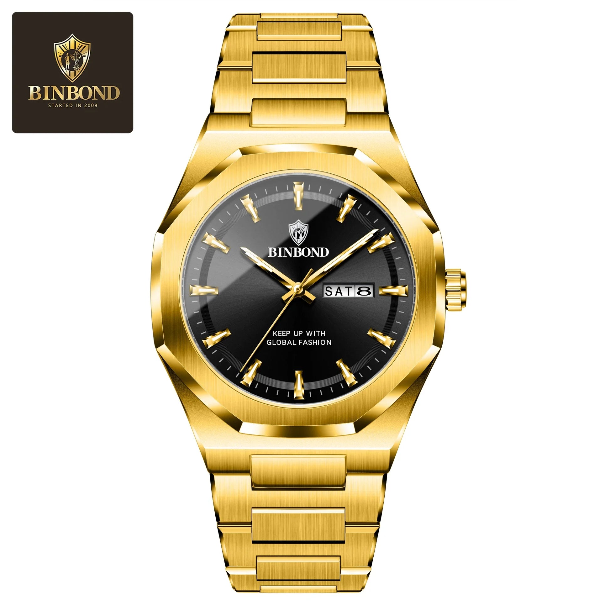 BINBOND B4010 4010 Fashion Casual Quartz Men Watch Stainless Steel Strap Luxury Dial Luminous Waterproof Business Men Wristwatch