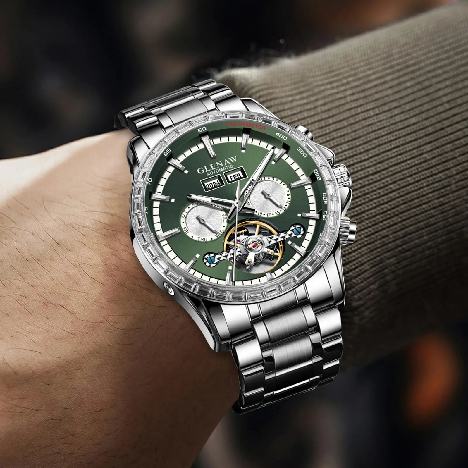 Glenaw high-end business fully automatic mechanical multi-function watch for men's fashionable waterproof watch