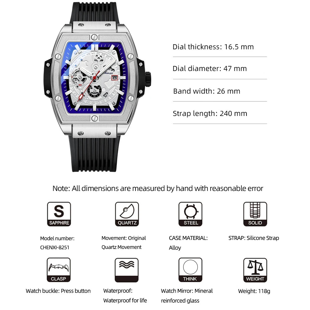 CHENXI Top Brand Popular Men Sports Watch Quartz Luxury Waterproof Silicone Strap WristWatch New Fashion Men's Date Clock