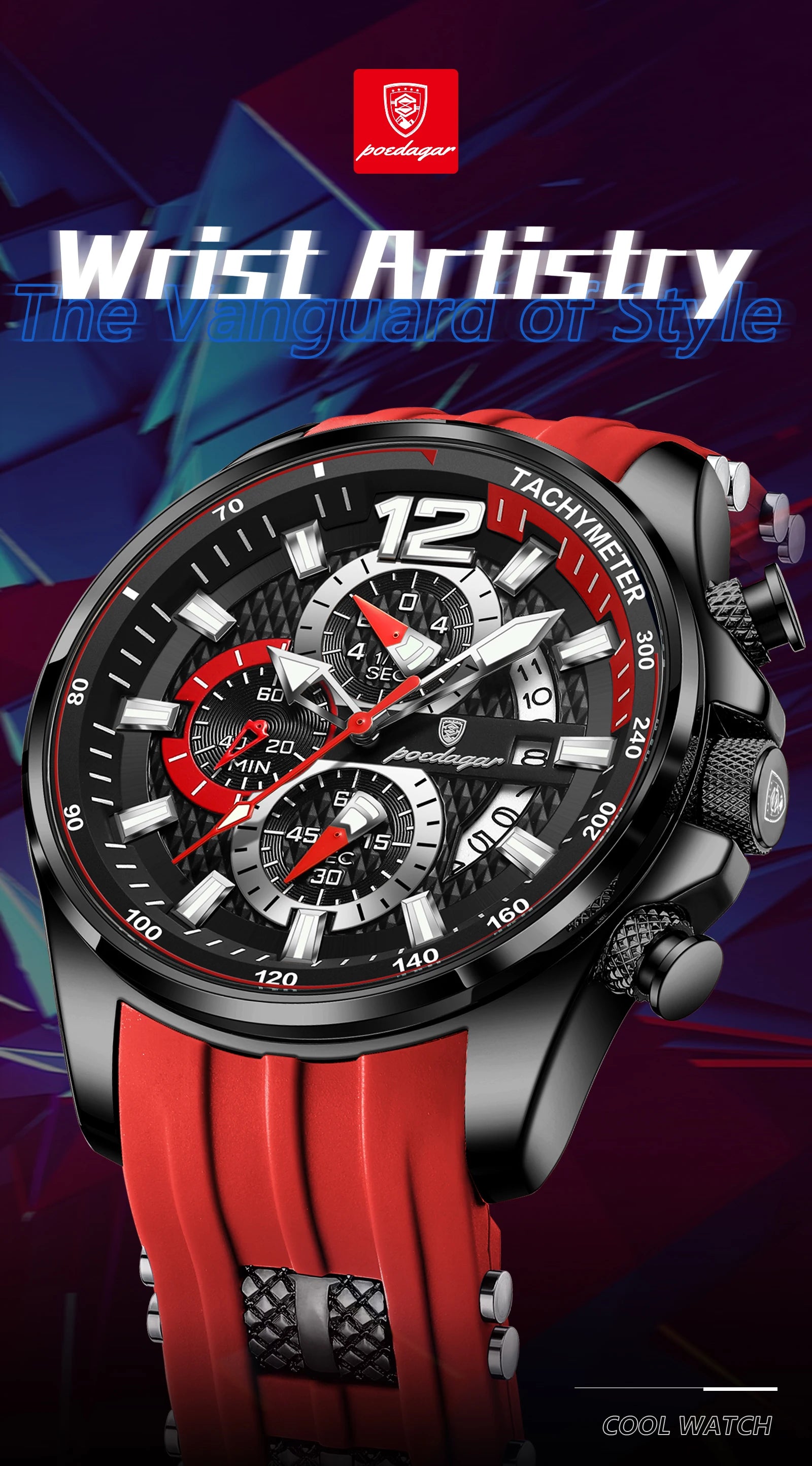 POEDAGAR Functional Watch For Men Date Chronograph Luminous Waterproof Silicone Classic Male Watch Quartz Original Men's Watches