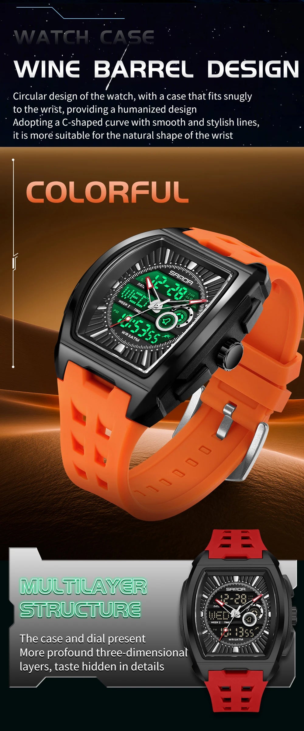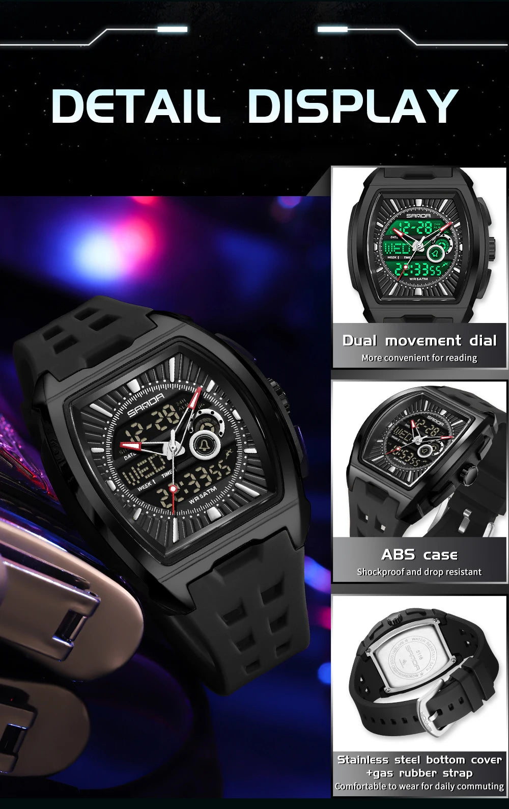 SANDA Luxury Men Wristwatch Electronic LED Display Luminous Sports Man Watch Quartz Waterproof Military Alarm Date Watches Male