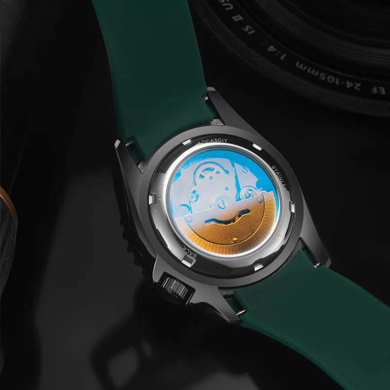 European and American Style High-End Luxury Black Submariner Series Automatic Mechanical Watch for Men, Skeleton Design, Waterproof, Calendar, Fashionable, Business Casual, Versatile, Unique, Cool, Handsome, Trendy Men's Watc