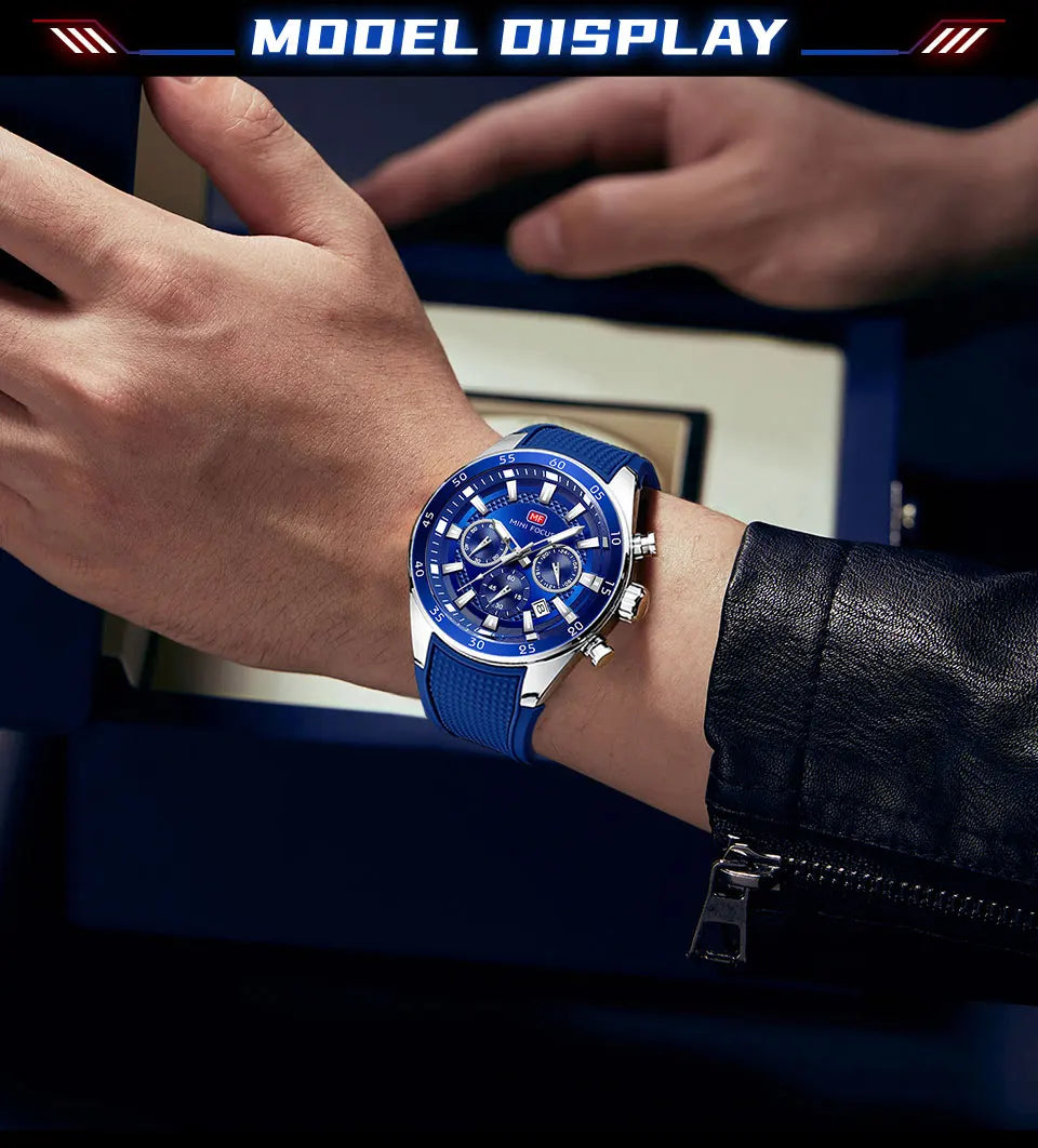 2026 New MINI FOCUS Men's Sports Quartz Watch Casual Analog Wrist Watch with Luminous Hands Silicone Strap Date Water Resistant