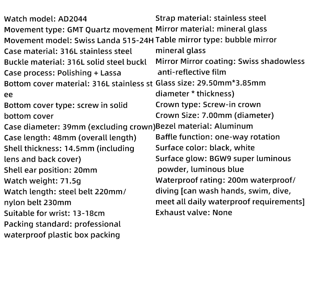 ADDIESDIVE Luxury GMT Men's Diving Watch 200m Waterproof Bubble Mirror Glass Quartz Watch BGW9 Blue Luminous Sports Watch AD2044
