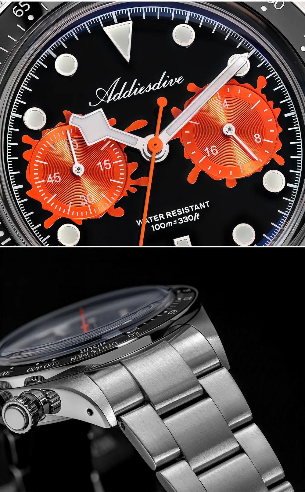 ADDIESDIVE New Luxury Mens Quartz Chronograph Watch VK64 Luxury Wristwatch Ceramic Bezel Stainless Steel 100M Waterproof AD2520