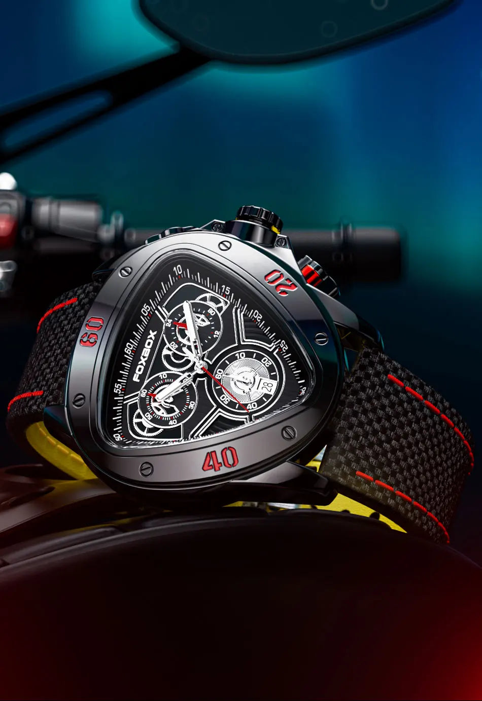FOXBOX Fashion Luxury Quartz Man Watch Creative Big Dial Chronograph Date Nylon Strap Casual Sport Triangle Men's Watches Clocks