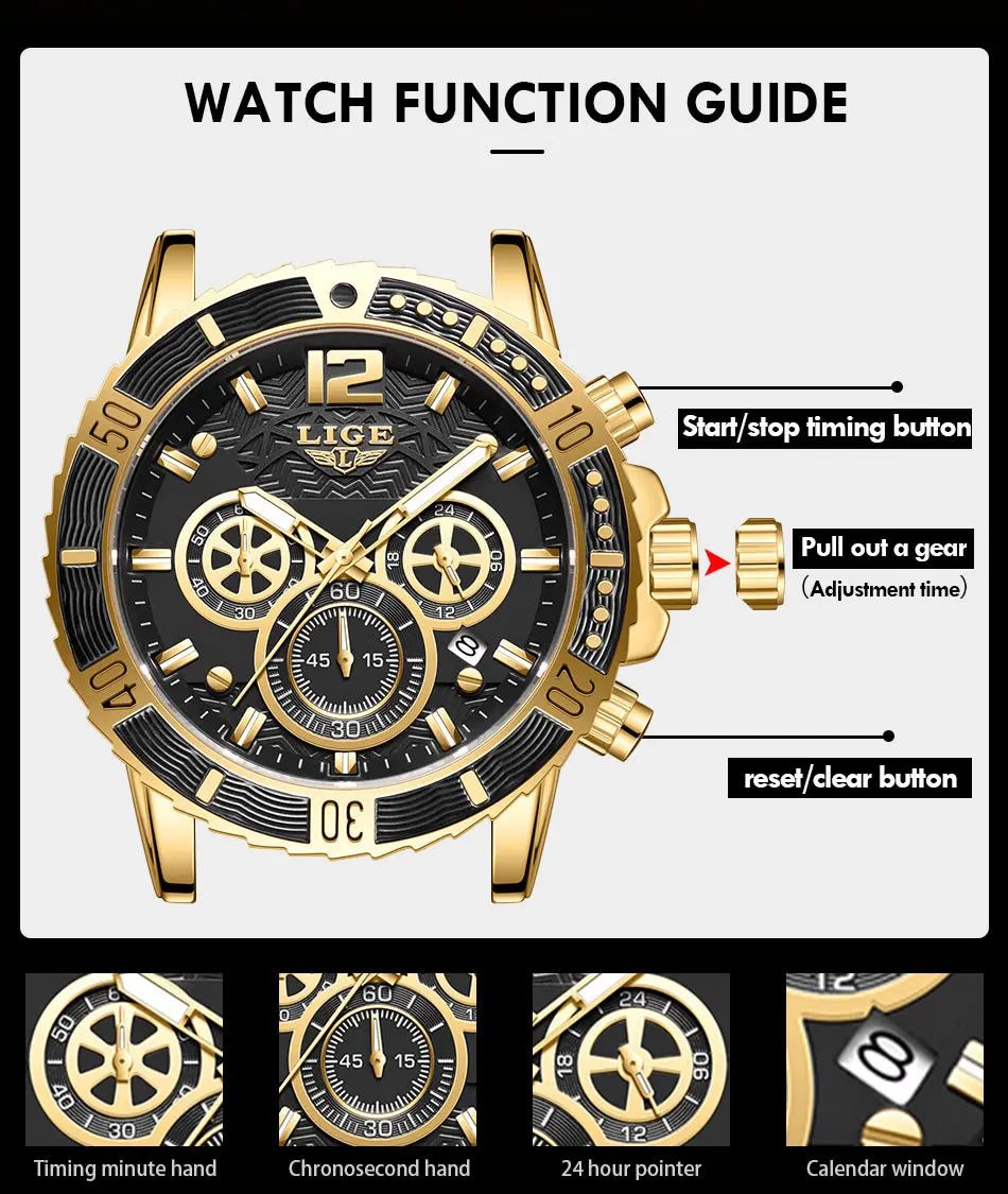 LIGE Luxury Casual Men's Wristwatch Sports Stainless Steel Waterproof Date Man Watch High Quality Fashion Quartz Men Watches